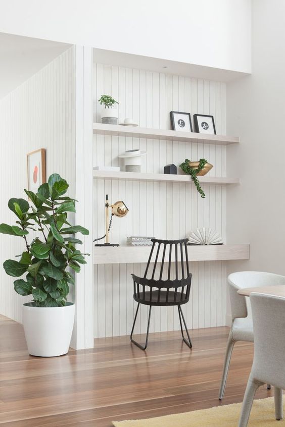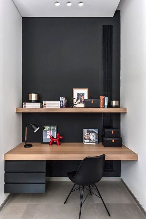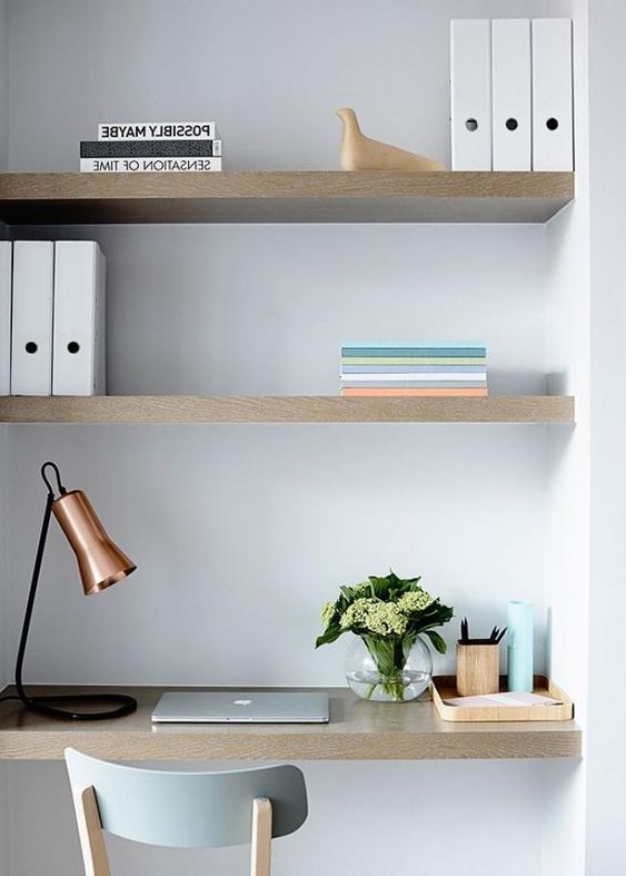 Μια πολύ καλή και πρακτική λύση είναι η τοποθέτηση ενός ραφιού σε ένα κενό τοίχο καθώς και ράφια πάνω από αυτό για την τακτοποίηση των απαραίτητων εγγράφων.